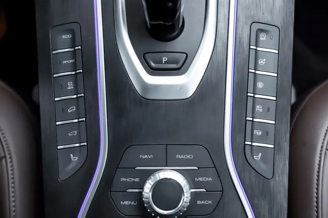 挡把后方设置了多个功能按键,包括驾驶模式切换(ECO、SPORT)、ESP、陡坡缓降、发动机启停、方向盘转向力度、全景影像、座椅加热/通风/按摩、自动泊车入位、多媒体控制等,驾驶员可以随手进行操控。