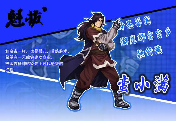 由于父母都是平民,没有纹耀,所以想要成为正经人,在闯灵山过程中被天火打击后无意间遇到蛮吉并将其收养,在四处打工中偶遇阿离公主。后来和阿离、雪伦一起学习脉术,在阿离打开第四脉门时,出现了差错,蛮小满暗中相助阿离,结果阿离一下子打开了五个脉门,不过蛮小满因此失去打开第四脉门的机会。蛮大人与阿离二人有段故事,小满却在知道阿离身份后始终不肯正面面对。在后来的兽国军队准备劫持阿离公主的战役中,阿离被树国人带走,蛮小满和蛮吉也逃到了窝窝乡。他在窝窝乡中屡屡挑战村长,但都以失败告终……后面就是《魁拔》电影系类里蛮大人的经历了