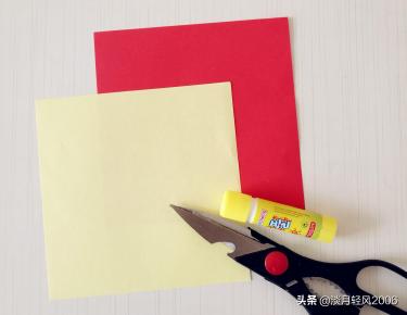红、黄两色卡纸、胶、圆规、剪刀。(厚一点的卡纸效果更好)