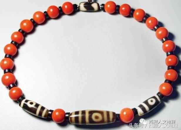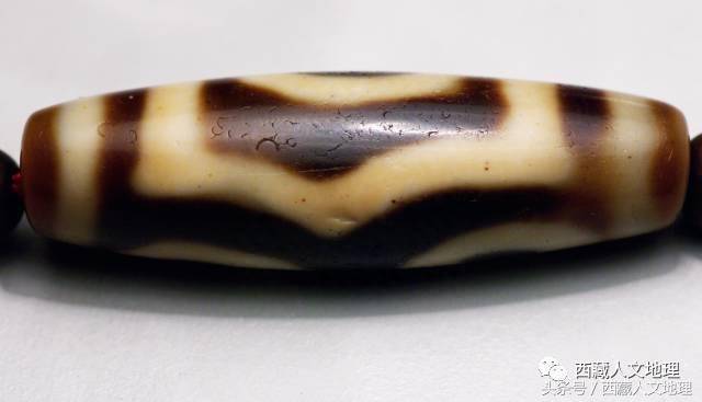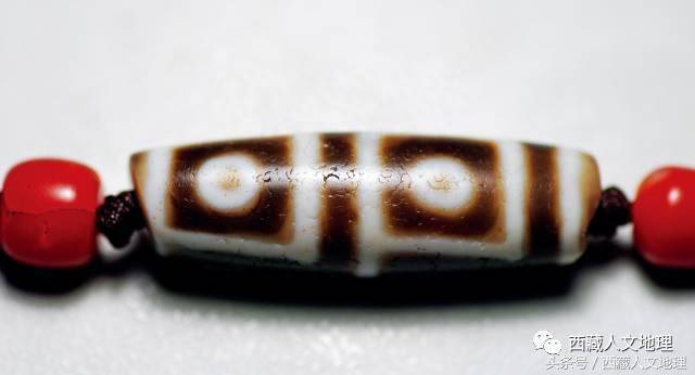 其实西藏本身并不生产天珠,其源头是两河文明产生的蚀刻玛瑙。西方学者认为天珠上的图案来自古代两河流域的珠子纹样,只是后来有演变和发展,早期的天珠或者说天珠的前身都是蚀刻红玉髓珠。而这样的蚀刻玛瑙经过现在考据有多种途径传入,第一种途径主要是从巴基斯坦、尼泊尔、印度、阿富汗地区传入吐蕃。另一种途径是由巴基斯坦经于阗进入吐蕃。