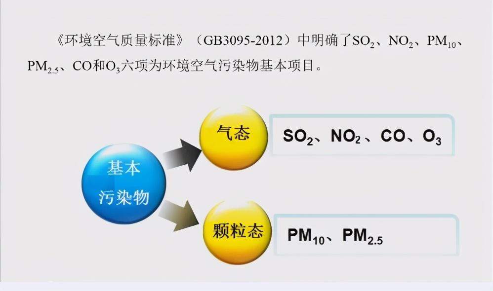 AQI监测基本污染分有颗粒物污染物2项,气态4项。