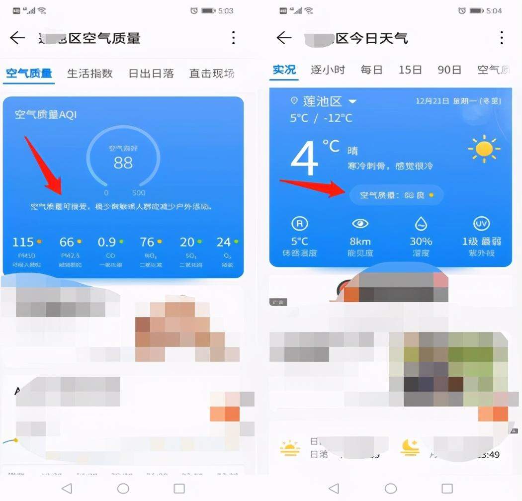 天气预报中可以查看的 空气质量。