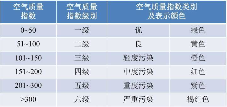 将常规监测的几种空气污染物浓度简化成为单一的概念性指数数值形式,并分级表征空气污染程度和空气质量状况。