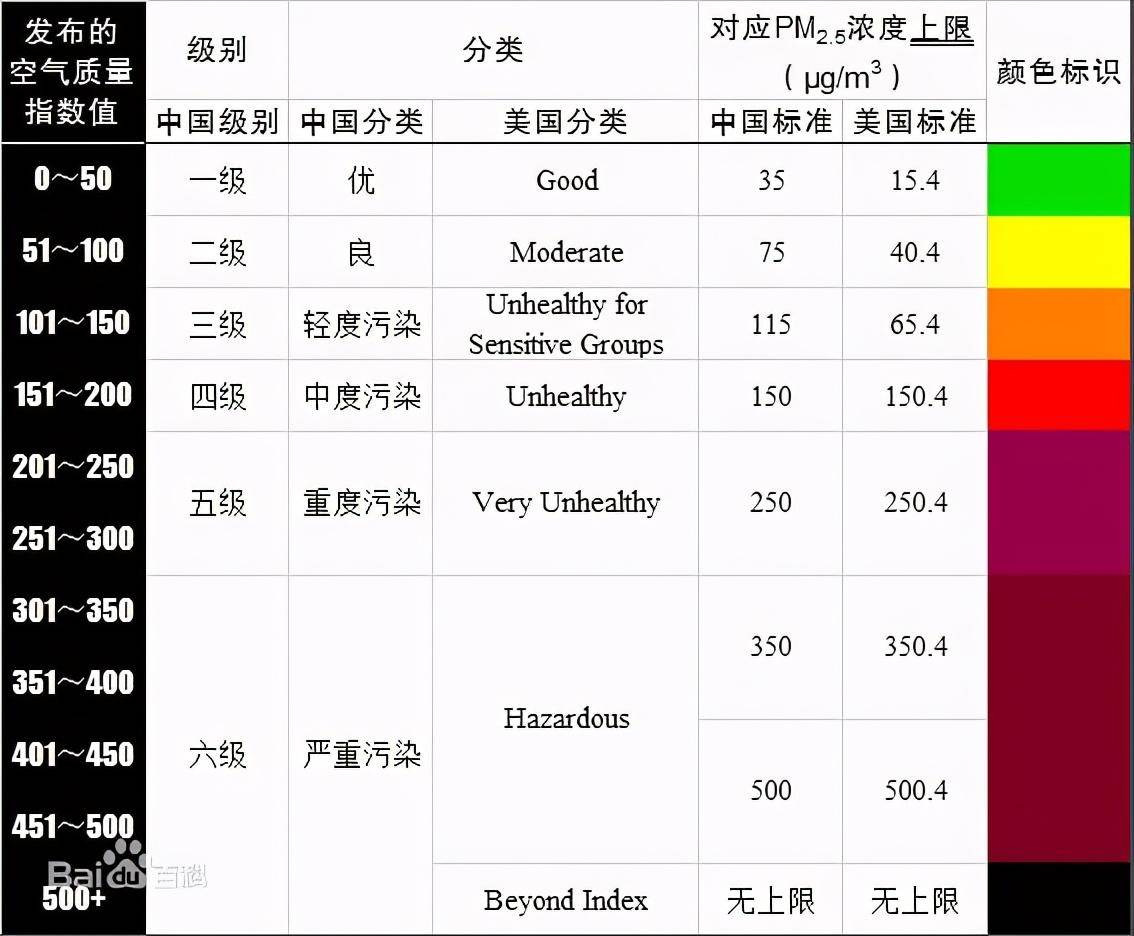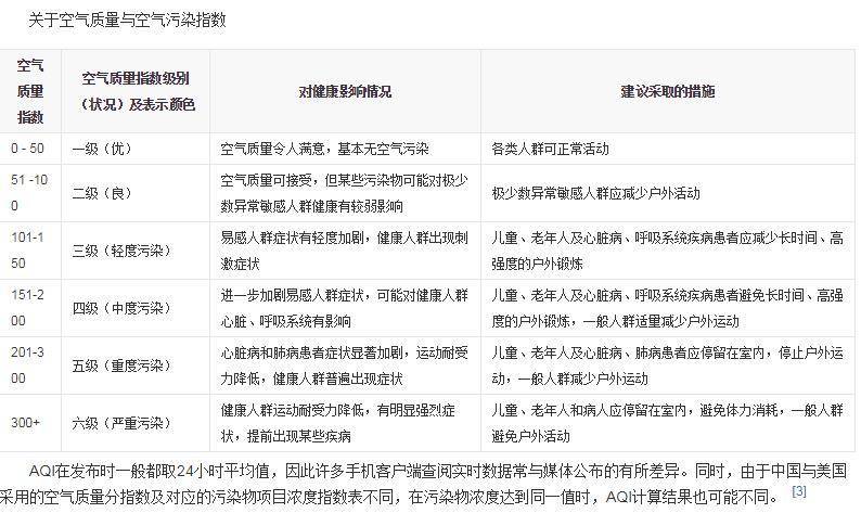 AQI与美国标准有所不同