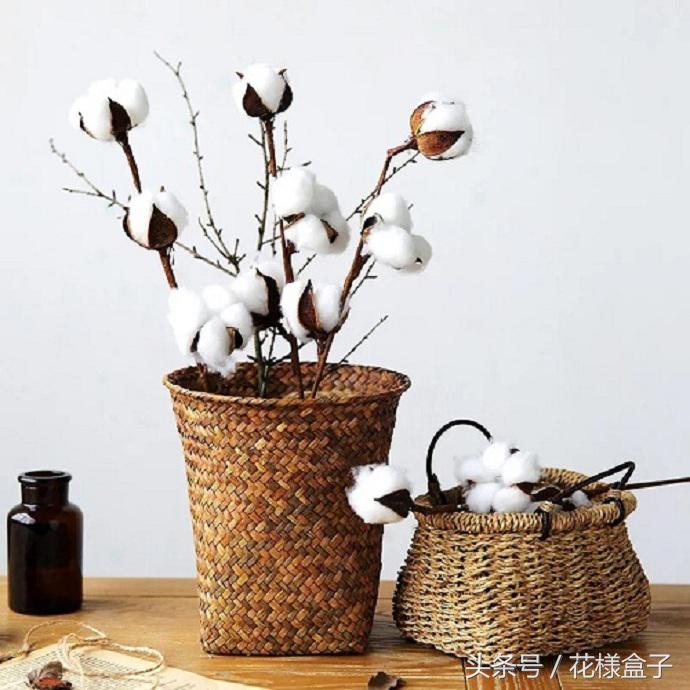 纯白色的棉花柔软又可爱,家居搭配中常常会有三两只简单插在花瓶中,放在家中的一个角落,有种欧式的极简风格。
