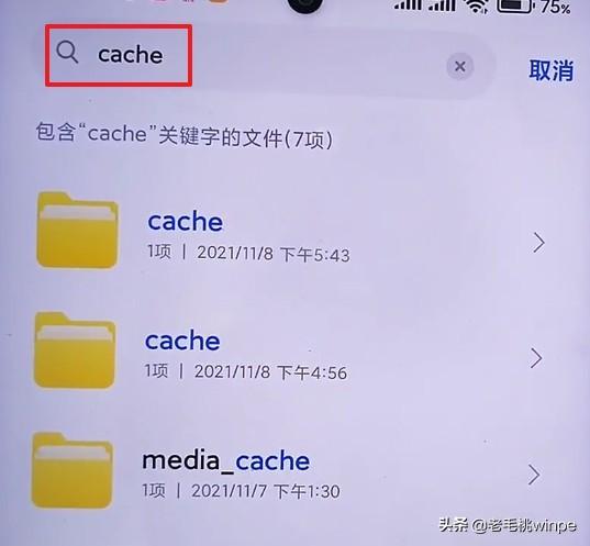 以输入cache为例,搜索后会自动识别所有的缓存文件,我们将搜索出来的文件全选删除就可以啦!