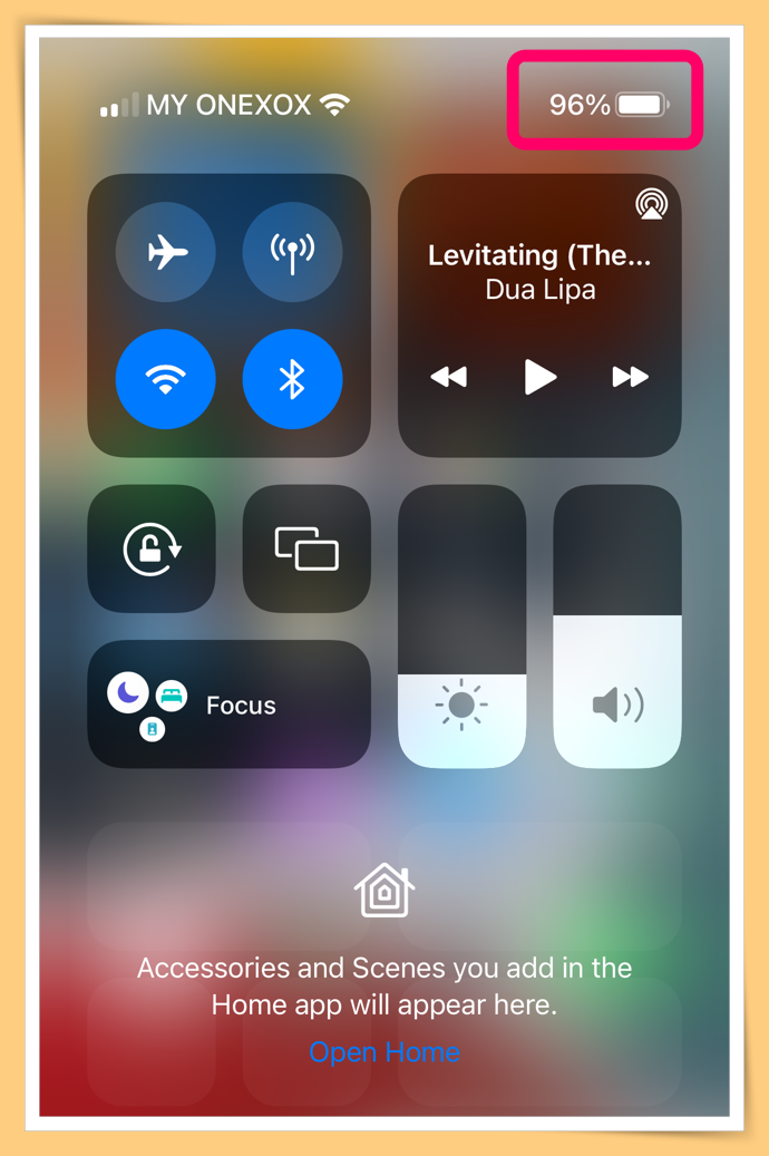 这个是最简单的方法,只需通过向下滑动iPhone的右上角来调用控制中心,就能显示电池的电量百分比。