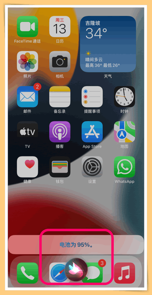 没错,Siri是大神,无论要做什么事情都可以呼唤它,包括想知道手机的电池还有多少电量,只需对着麦克风说,“Hey Siri,手机的电池量是多少?” 它就会告诉你答案。