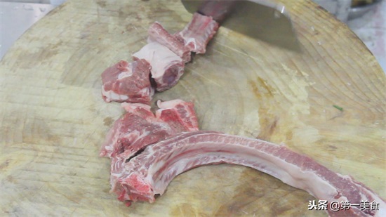 购买猪肋排两根,洗干净后,剁成同等小段。