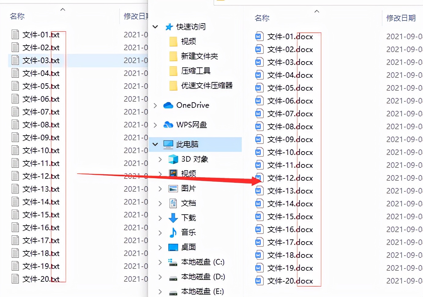 第四,通过下图可以看到,所有文件的后缀名由txt全部替换成了docx。