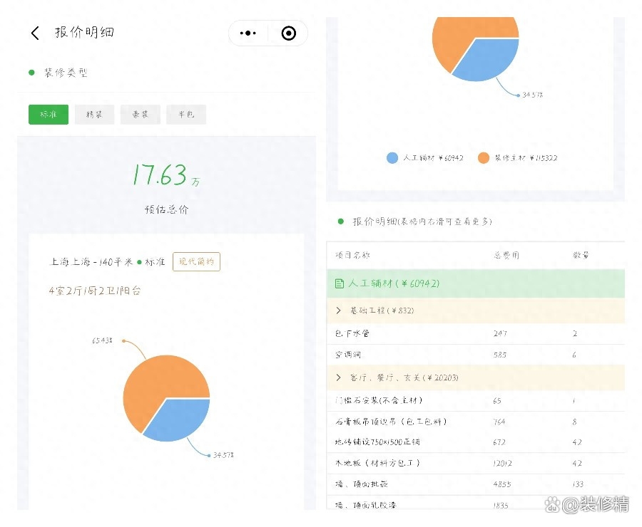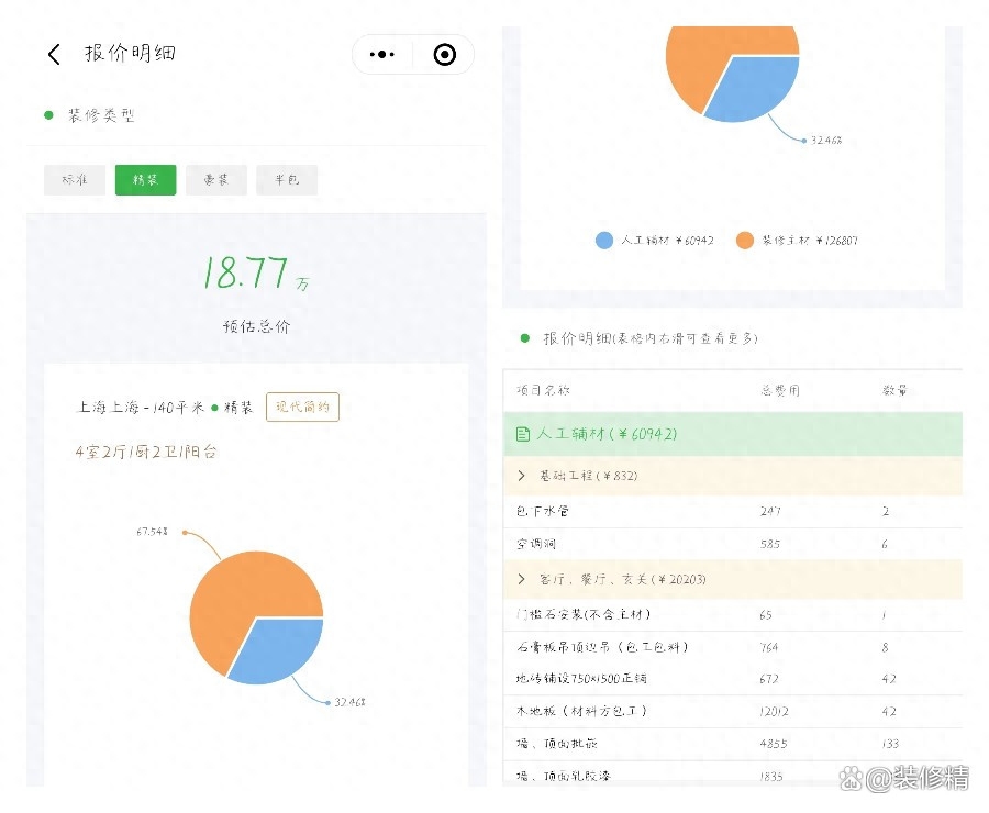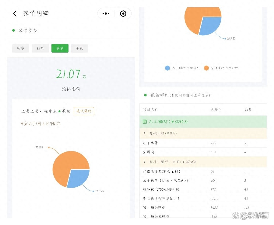 一键免费获取同城装修报价以及不同风格的报价清单明细。