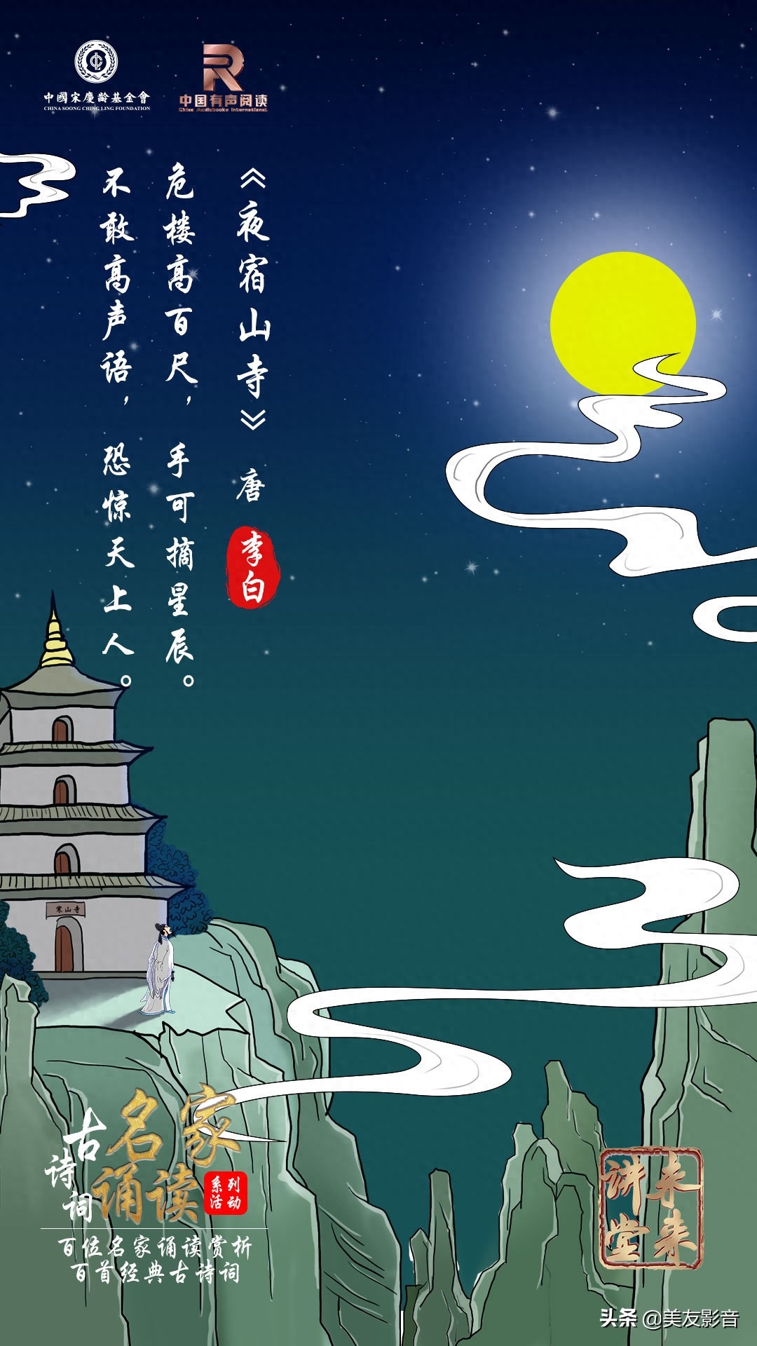 今天,著名导演唐烨为大家诵读和赏析唐代诗人李白的作品《夜宿山寺》。