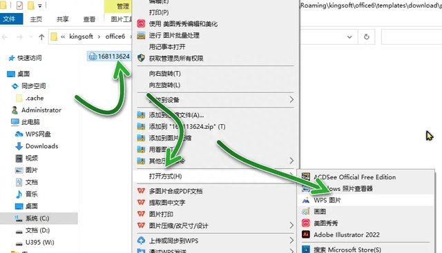 1、打开电脑中的本地磁盘,鼠标右键点击要打开的图片,在跳出的操作框中选择打开方式,然后再选择用WPS图片打开。