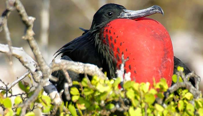军舰鸟也不是从不到陆地上生活,同时也是食腐鸟和一般的食肉鸟,经常捕捉小海龟和其他小鸟。它们还很讲卫生,每次吃完东西,都会降落在海面上清洗一下。雄军舰鸟繁殖期间,它的喉囊会变成鲜艳的绯红色,并且膨胀起来。雌鸟产下一枚蛋后,雄鸟的喉囊才慢慢瘪下去,颜色也变回暗红色。