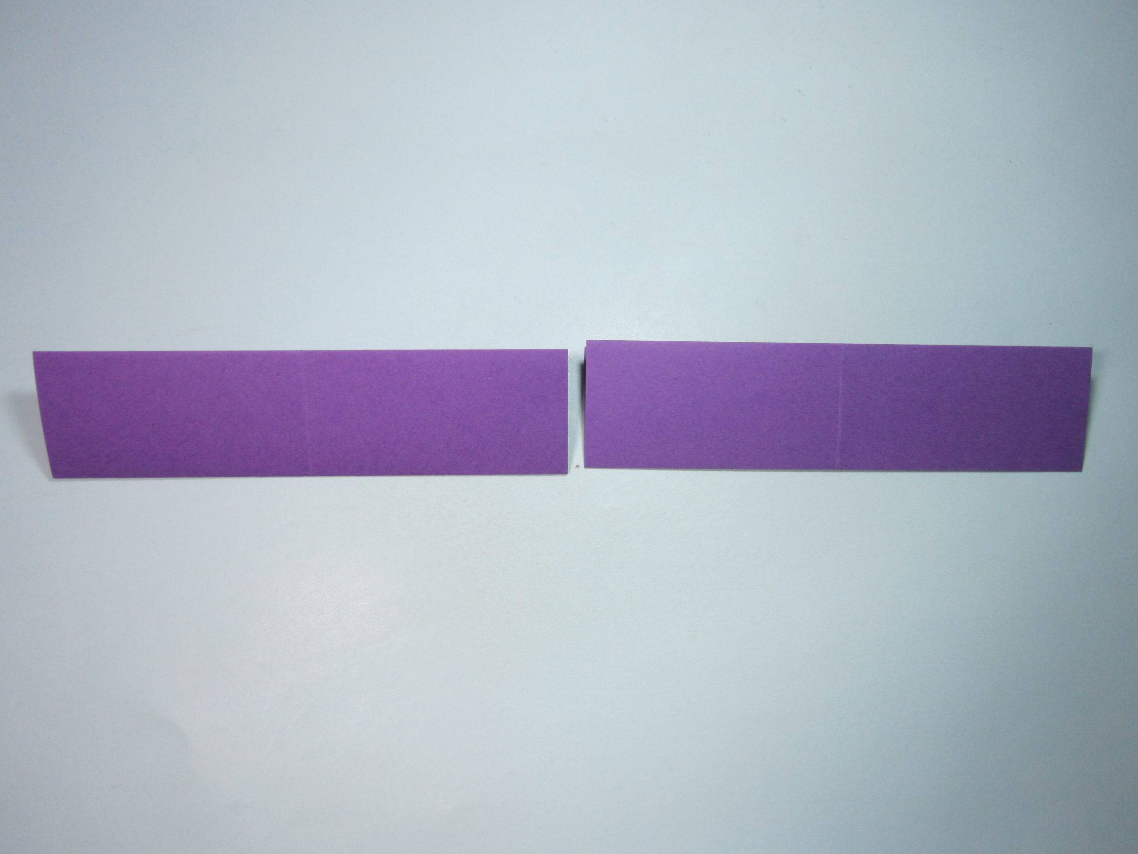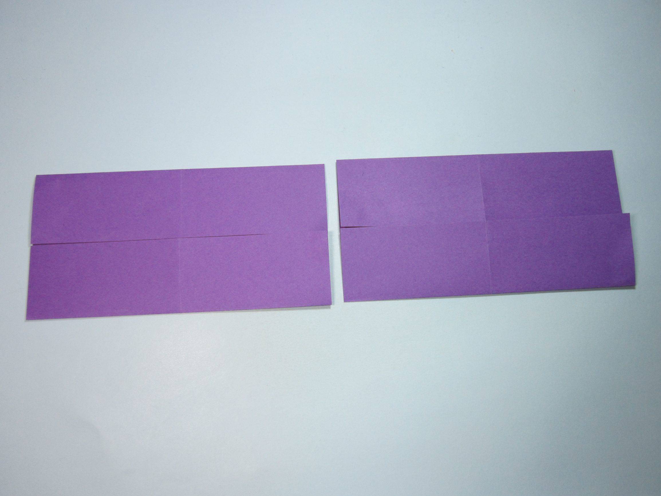 第5步、将两张纸张的另一侧也沿着中线翻折,方向与上一步相反。得到两个这种部件。