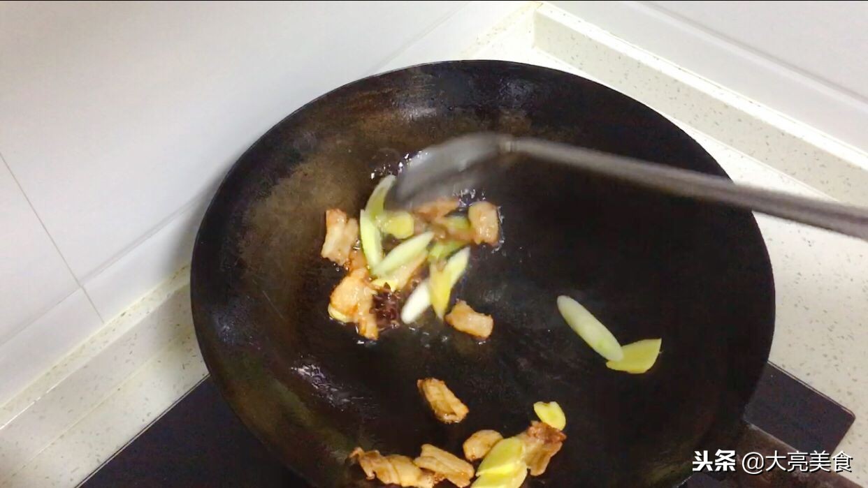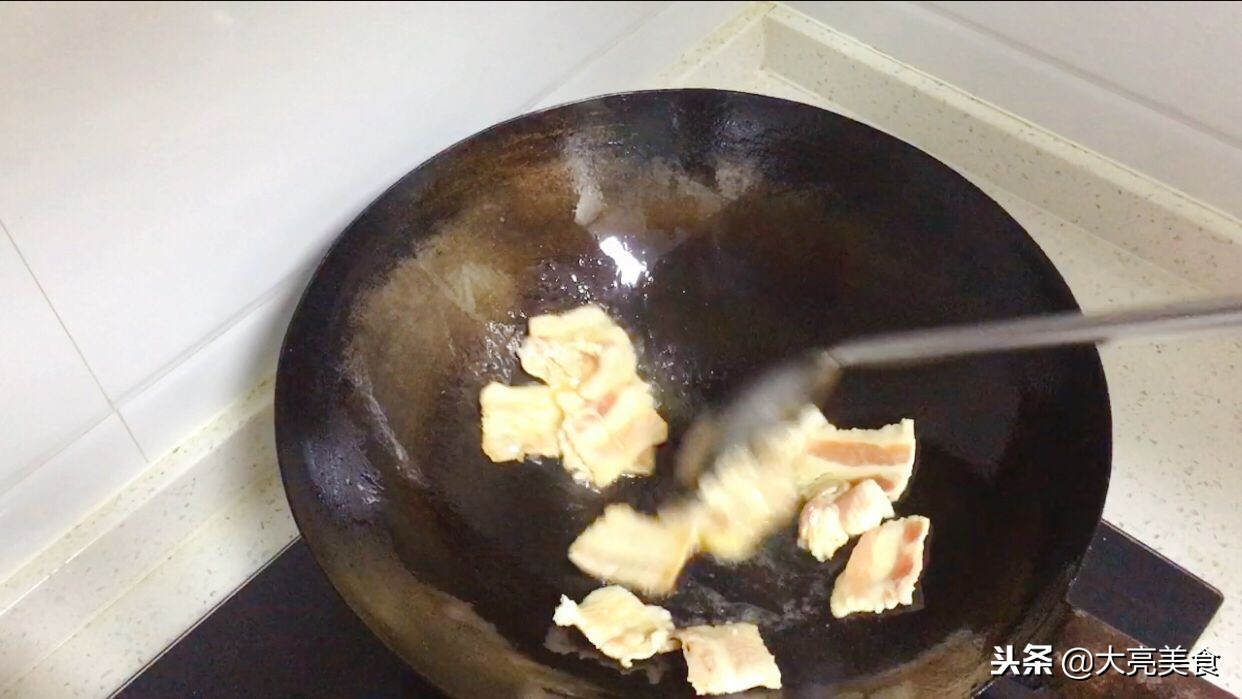 锅中放少许底油,五花肉放入锅中煸炒至两面金黄,喜欢吃肥点的朋友炒熟即可。
