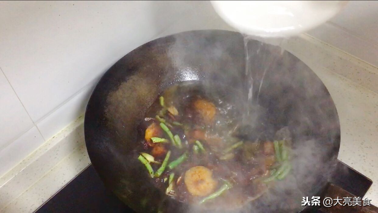 然后加入食盐适量,因为豆角不容易熟透,先炖两分钟左右。