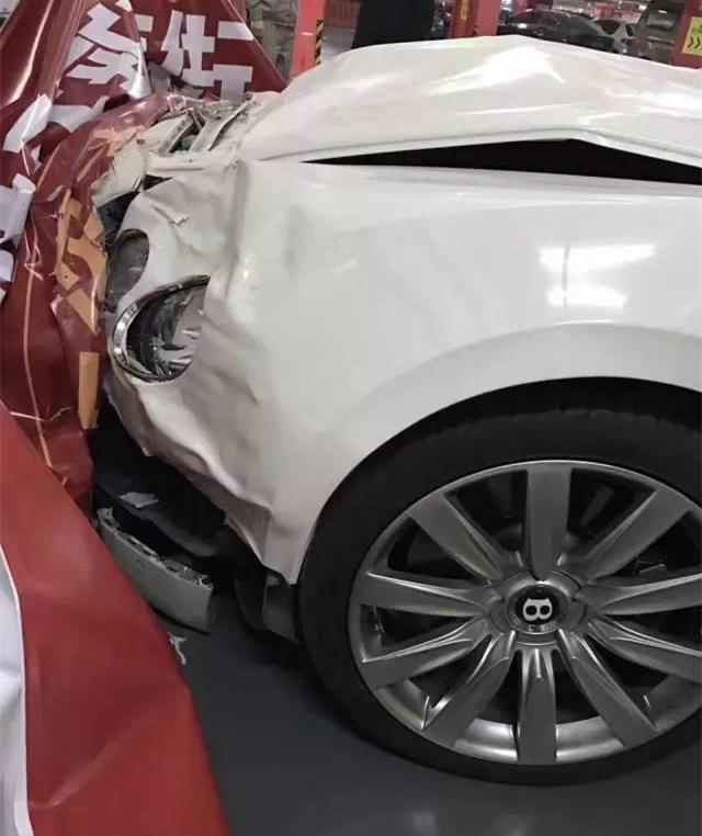 虽然人没事,不过飞驰的保险杠和发动机盖就报销了,光保险杠就要8-10万,加起来怎么也得要个十几万元吧。所以迪哥在这里劝告大家,人一旦离车一定要空档拉手刹!