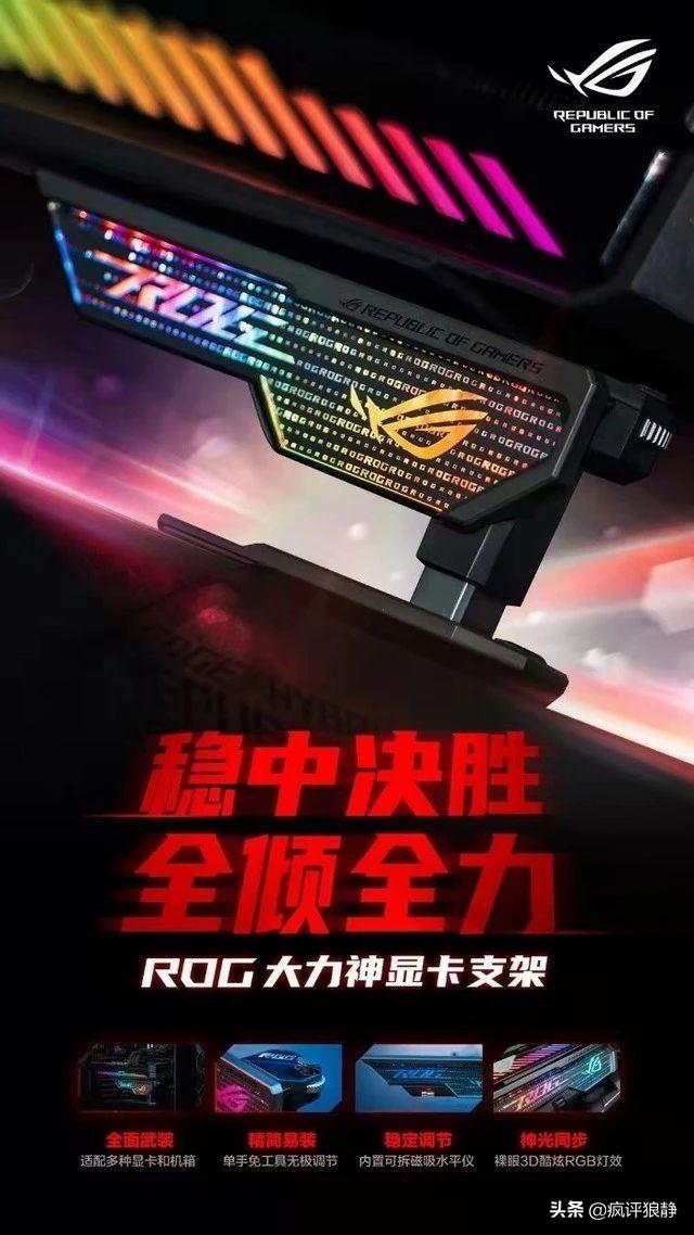 个性的机箱,发光的显卡和风扇,让我们的电脑主机从电脑桌下提升到了电脑桌上。当我们在使用发光3090兴奋的时候,可能会忽略一个小问题,就是显卡安装的稳定性,现在高端的显卡又大又重,我们的电脑主机在竖立的时候,显卡仅靠一个螺丝和一卡插槽作为支撑点,硕大的显卡难免会出现弯曲和倾斜,在使用寿命肯定影响不少,为了解决这个问题,显卡支架必不可少了,有个会发光的显卡支架更是绚丽多彩。