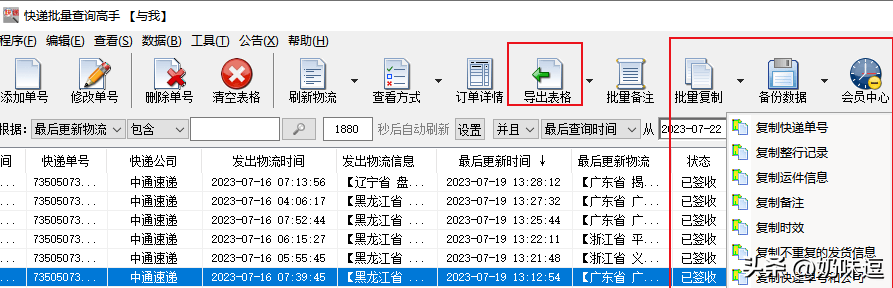 6. 数据导出与复制:这件支持将查询到的物流信息导出为Excel或CSV等格式,方便随时查看和使用,也可以以批量复制的形式将其保存到电脑上。