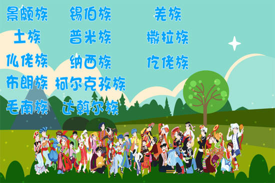 我国56个民族还有景颇族、土族、仫佬族、布朗族、毛南族、锡伯族、普米族、纳西族、柯尔克孜族、达斡尔族、羌族、撒拉族、仡佬族、阿昌族、塔吉克族、怒族、俄罗斯族、德昂族、裕固族、塔塔尔族、鄂伦春族、门巴族、基诺族。