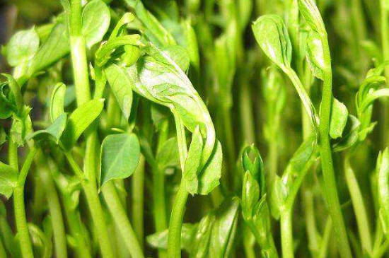 豌豆苗是豌豆的幼嫩茎叶,呈细条形,味道清香,可以做成多种佳肴。豌豆苗的营养丰富,含有钙质、维生素、胡萝卜素,食用能够去除皮肤表面的油脂,改善皮肤状态。