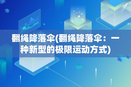 翻绳降落伞(翻绳降落伞:一种新型的极限运动方式)