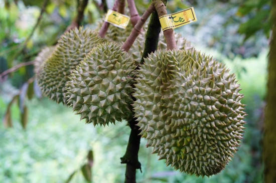 观察榴莲的颜色时,成熟榴莲的颜色会是偏黄的,且成熟度越高的榴莲,其黄色会越深。而没有成熟的榴莲会呈青色。