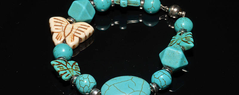 绿松石最容易鉴别的地方就是它的颜色,艳丽的天蓝色或绿蓝色,不透明。当然也有其他的颜色,比如白色、黄绿色等。通常瓷度越高颜色越深,泡松颜色发白、发浅,在没有湿水的情况下呈浅绿、浅蓝色,有粉状感。