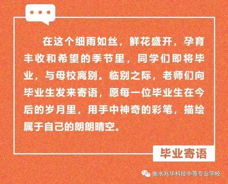 在这个细雨如丝,鲜花盛开,孕育丰收和希望的季节里,同学们即将毕业,与母校离别。临别之际,老师们向毕业生发来寄语,愿每一位毕业生在今后的岁月里,用手中神奇的彩笔,描绘属于自己的朗朗晴空。
