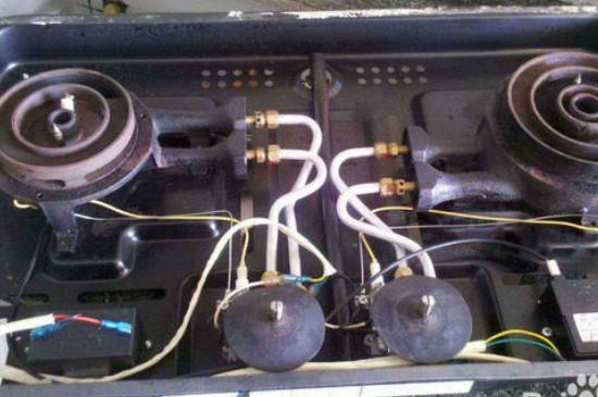 揭开灶台后,可以看到内部结构,找到点火针的位置,并更换新的打火针。