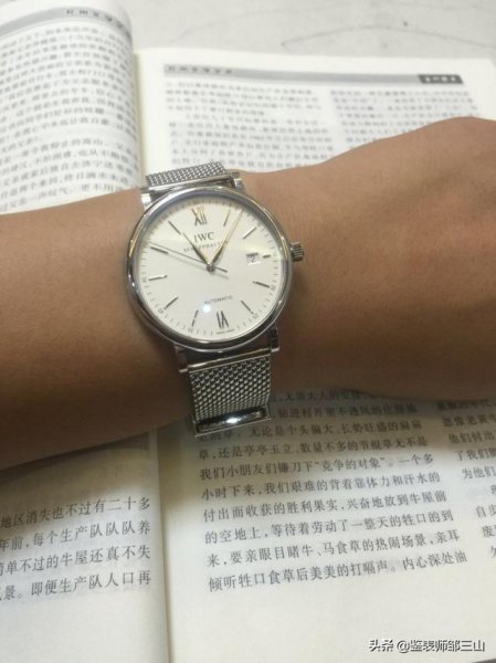3点位有日历窗。标志性的柳叶指针很漂亮、识别度非常高。万国钢壳柏涛菲诺红60有白盘银针、白盘金针、黑盘银针3个版本,同样使用通用机芯,既万国35111机芯(和马克一样)。颜值在同级别手表中,可以说是颜值担当了。