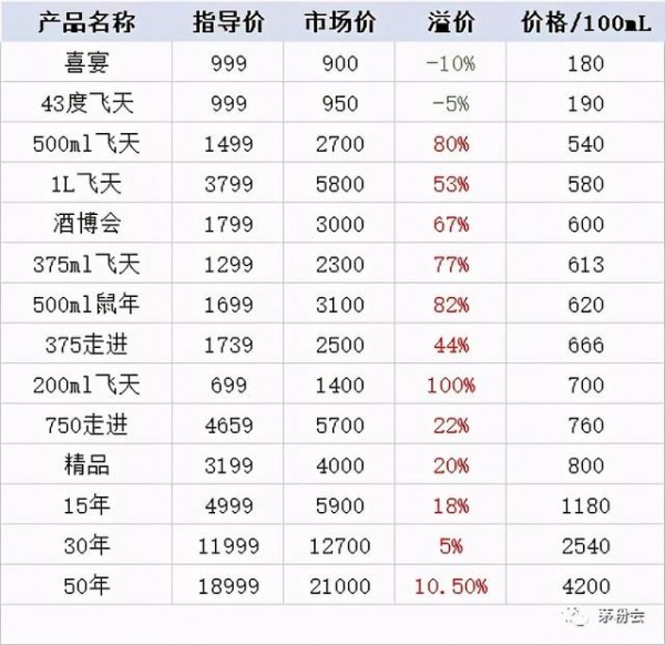 200mL飞天指导价699,市场价1400,溢价100%,700元/100mL