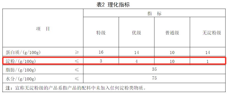 但烤肠并不是像传言中所说的那样都是淀粉,有些烤肠的淀粉含量很低。按照《SB/T 10279-2017 熏煮香肠》可以将烤肠分为 4 个等级,包括特级、优级、普通级、无淀粉级。其中特级、优级以及无淀粉级的淀粉含量都很低,都不超过 4%,只有普通级的淀粉含量相对高一些,可达到 10%。