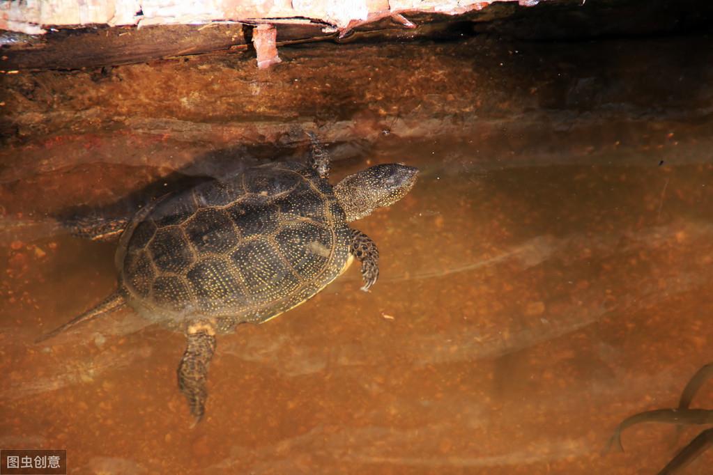 在土里放点水,渗透泥土后,余留的水面基本盖住半个龟背就好,这样的水位让龟钻入泥里后更有安全感。当然也可以直接放点水就行,但草龟的天性是喜欢钻泥的。