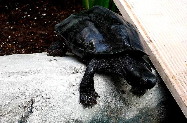 做好了上面这些,接下来,对于墨化最重要的,便是一定要让它如自然环境中一样,接受温差变化的洗礼,尤其是要进行冬眠。在每年九月、十月间,我们应该有意识的加强喂养,在缸里多放几条鱼,因为我不会给它加温,所以它能够感受到外界温度的下降,本能的驱使下,龟龟自己就会多吃储存营养。