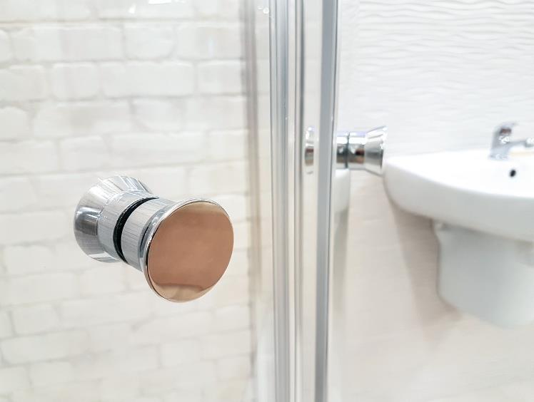公共卫生间的门把手和冲厕按钮