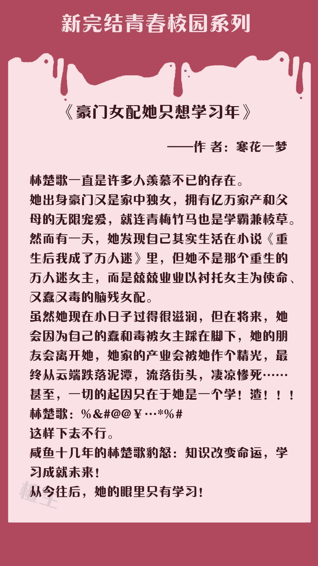 第四本:《豪门女配她只想学习》作者:寒花一梦
