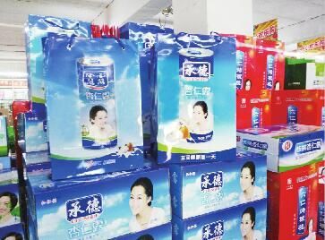 为核实张女士所反映的情况,记者走访了市区西郊的几家小型超市。在其中一家规模稍大的超市里,发现了张女士所买的“承德杏仁露”。