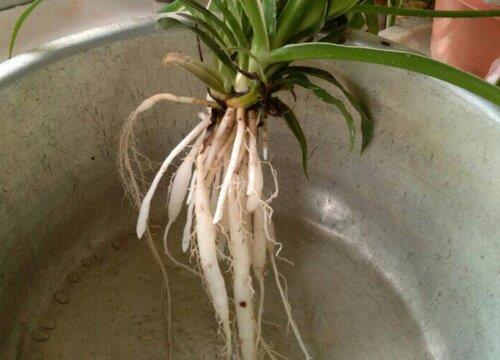 这就是为什么吊兰耐干旱怕积水的原因,不过,土壤中的根系不能太粗太多,不然就会影响地面上的部分生长,要在换盆时进行修根。