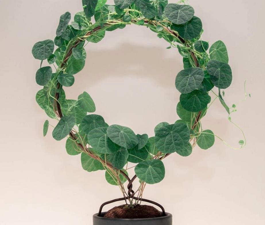 金不换在每年的春天会长出藤条,藤条做好牵引,它可以爬满整个阳台,重点在于金不换的叶子,它的叶子长得跟荷花叶子一样。