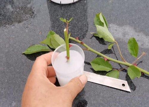 嫁接需要在月季的植株上,选择长势良好的带有健康幼芽的枝条。将其身上的刺处理掉,选择一根粗壮成熟的砧木,将其进行横向剪断。在切面处用刀划出一道口,把处理好的枝条放入口中,用绳子进行捆绑即可。