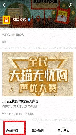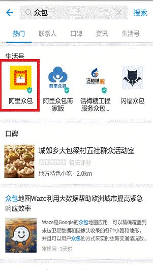 然后输入“众包”,选择生活号下的“阿里众包”;