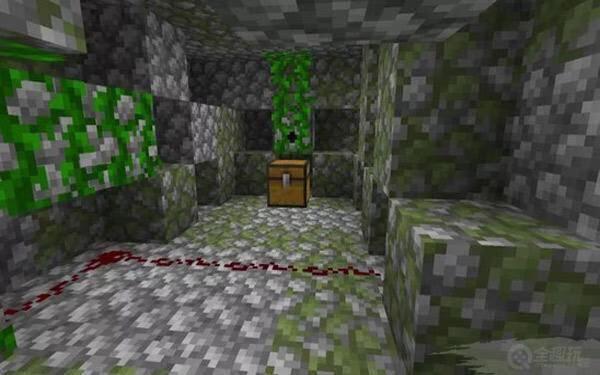 3、一旦线铺设完成,绊线钩会显得被拉下来一点,表示成功铺设。此时,一旦任何实体(包括小编、生物、箭、矿车、船,但不包括扔出的末影之眼与附魔之瓶)经过铺设好的线,或是通过鼠标左键或者是新增/移除绊线体系中任意一部分下方的方块来破坏铺设好的线(除非手里有剪刀),两边的绊线钩都会输出红石电能。在绊线上走动或移除绊线(无论是否使用剪刀)均为方块更新现象,可为方块更新感应器感应。