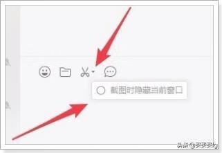 4、如果想要隐藏当前窗口的话,可以先点击截图按钮旁边的下拉按钮,在弹出菜单中选择“截图时隐藏当前窗口”选项就可以了。