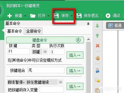5、编辑完成后,在该页面中找到保存选项,点击该选项即可成功使用按键精灵写脚本。
