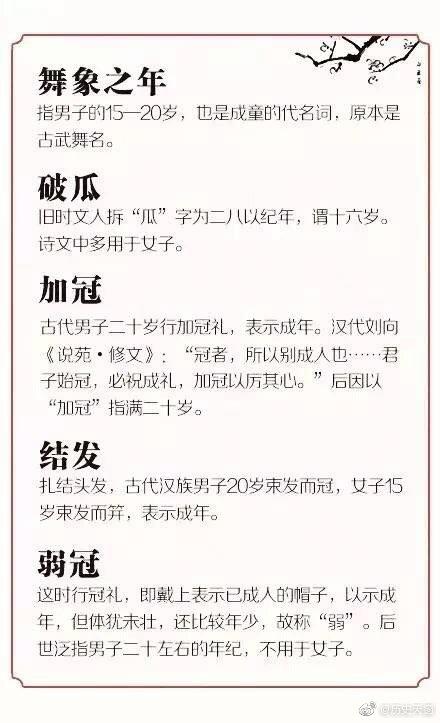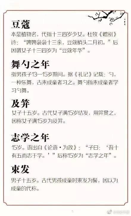 古人关于不同年龄的称呼,你知道你的岁数叫做什么吗?