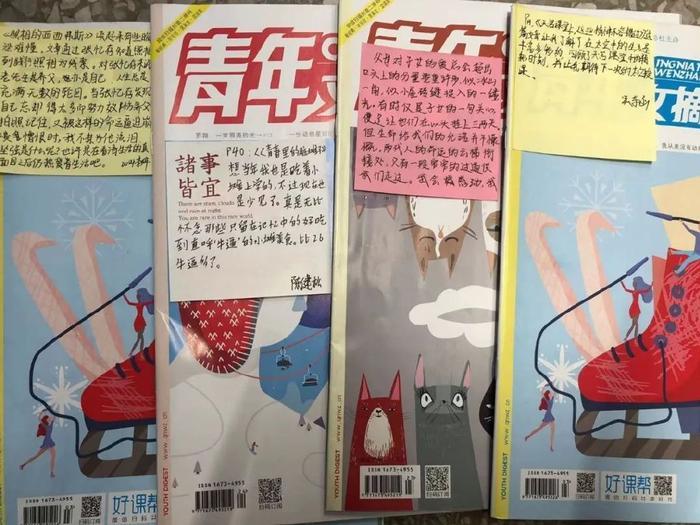 拿到杂志完成阅读,可以在杂志上贴一张“便利贴”,写上自己对某篇文章的读后感,以及你的专属标签(姓名、班级等),也许会漂流到某个班级或好朋友手中——