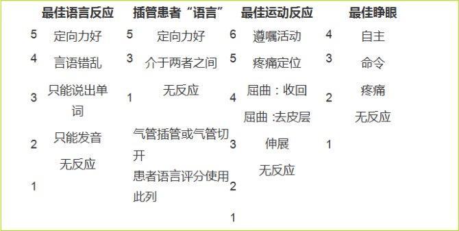 j.格拉斯哥昏迷评分(GCS):使用镇静和(或)肌松药物时应遵循best guess的原则进行判断评分,即根据临床表现及药物使用情况,估计在没有药物影响时的GCS。