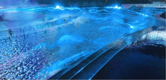 河道除了喷泉的布局,还以激光营造出一片云海的意境。